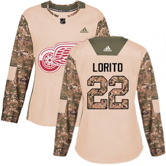 • Women's Adidas Detroit Red Wings #22 Matthew Lorito Authentic Camo Veterans Day Practice NHL Jersey