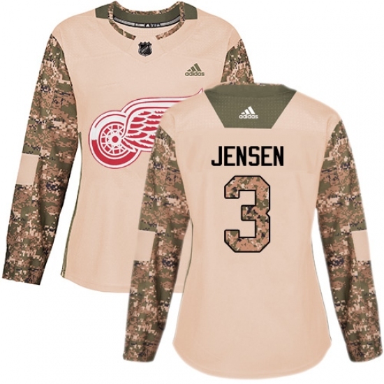 • Women's Adidas Detroit Red Wings #3 Nick Jensen Authentic Camo Veterans Day Practice NHL Jersey