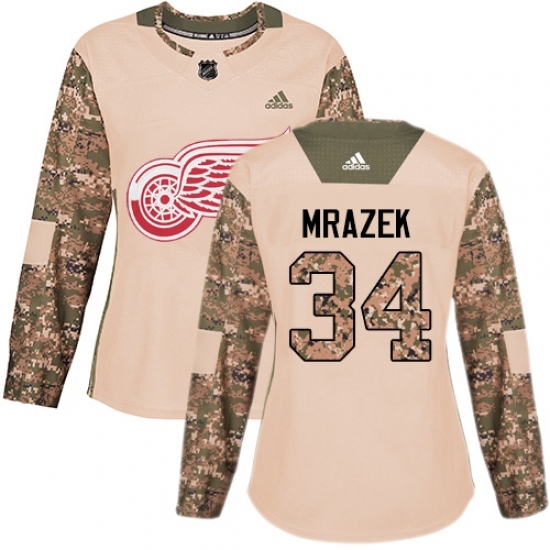 • Women's Adidas Detroit Red Wings #34 Petr Mrazek Authentic Camo Veterans Day Practice NHL Jersey