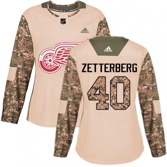 Women's Adidas Detroit Red Wings #40 Henrik Zetterberg Authentic Camo Veterans Day Practice NHL Jersey