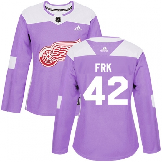 Women's Adidas Detroit Red Wings #42 Martin Frk Authentic Purple Fights Cancer Practice NHL Jersey