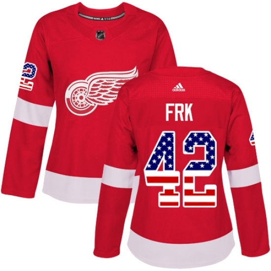 Women's Adidas Detroit Red Wings #42 Martin Frk Authentic Red USA Flag Fashion NHL Jersey