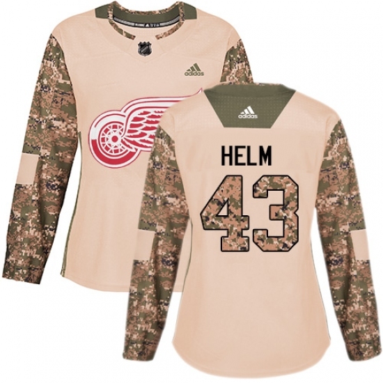 • Women's Adidas Detroit Red Wings #43 Darren Helm Authentic Camo Veterans Day Practice NHL Jersey