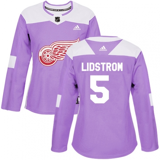 Women's Adidas Detroit Red Wings #5 Nicklas Lidstrom Authentic Purple Fights Cancer Practice NHL Jersey