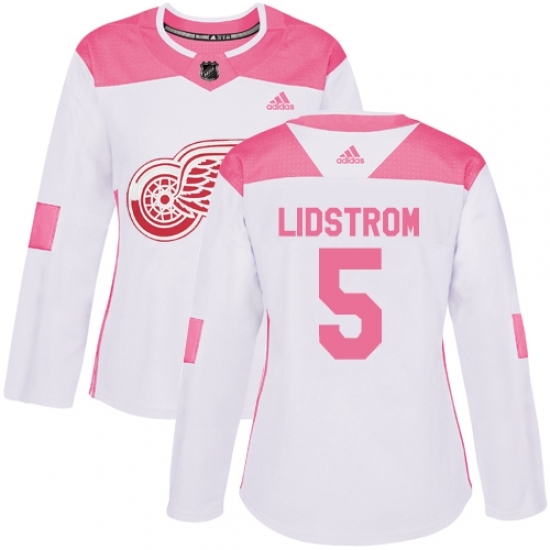 Women's Adidas Detroit Red Wings #5 Nicklas Lidstrom Authentic White/Pink Fashion NHL Jersey