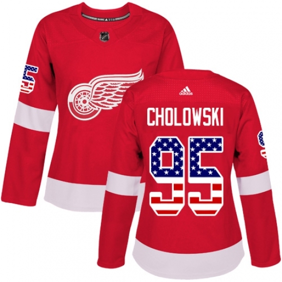 Women's Adidas Detroit Red Wings #95 Dennis Cholowski Authentic Red USA Flag Fashion NHL Jersey