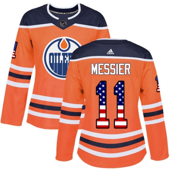 Women's Adidas Edmonton Oilers #11 Mark Messier Authentic Orange USA Flag Fashion NHL Jersey