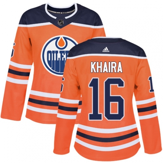 • Women's Adidas Edmonton Oilers #16 Jujhar Khaira Authentic Orange Home NHL Jersey