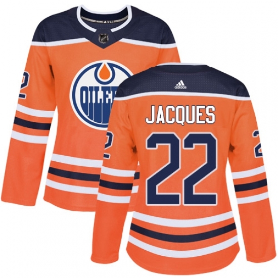 • Women's Adidas Edmonton Oilers #22 Jean-Francois Jacques Authentic Orange Home NHL Jersey