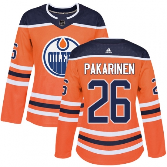 Women's Adidas Edmonton Oilers #26 Iiro Pakarinen Authentic Orange Home NHL Jersey