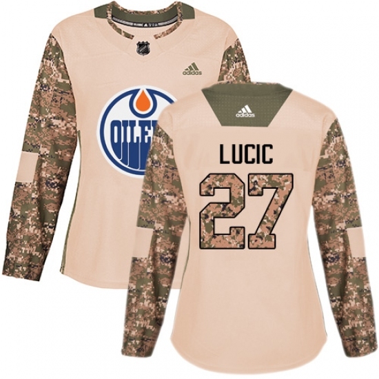 • Women's Adidas Edmonton Oilers #27 Milan Lucic Authentic Camo Veterans Day Practice NHL Jersey