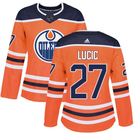 Women's Adidas Edmonton Oilers #27 Milan Lucic Authentic Orange Home NHL Jersey