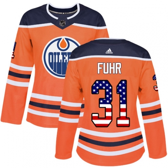 Women's Adidas Edmonton Oilers #31 Grant Fuhr Authentic Orange USA Flag Fashion NHL Jersey