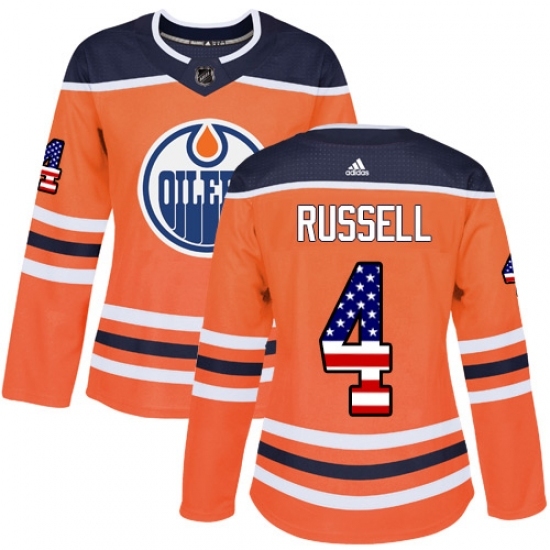 Women's Adidas Edmonton Oilers #4 Kris Russell Authentic Orange USA Flag Fashion NHL Jersey