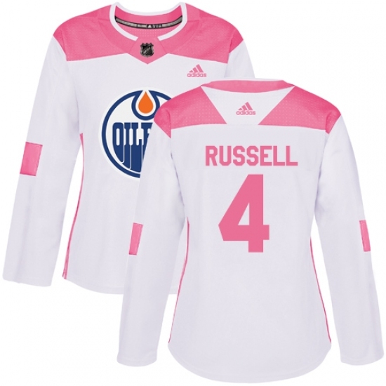Women's Adidas Edmonton Oilers #4 Kris Russell Authentic White/Pink Fashion NHL Jersey