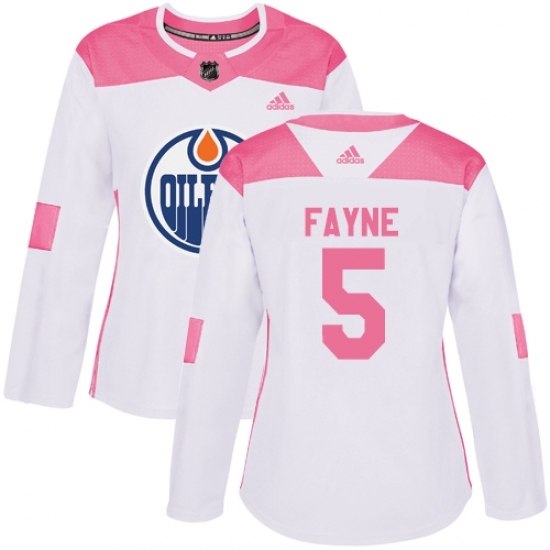 • Women's Adidas Edmonton Oilers #5 Mark Fayne Authentic White/Pink Fashion NHL Jersey