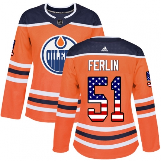 • Women's Adidas Edmonton Oilers #51 Brian Ferlin Authentic Orange USA Flag Fashion NHL Jersey