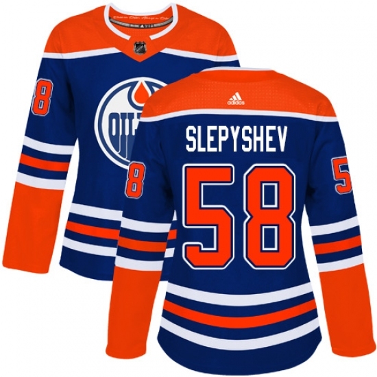 • Women's Adidas Edmonton Oilers #58 Anton Slepyshev Authentic Royal Blue Alternate NHL Jersey