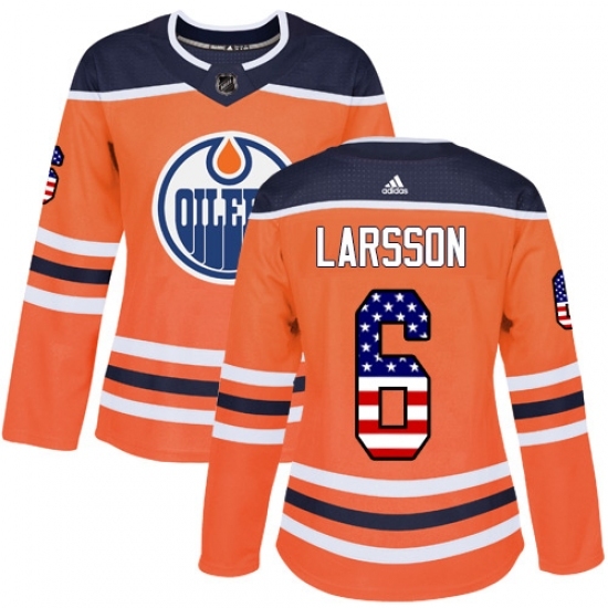 • Women's Adidas Edmonton Oilers #6 Adam Larsson Authentic Orange USA Flag Fashion NHL Jersey