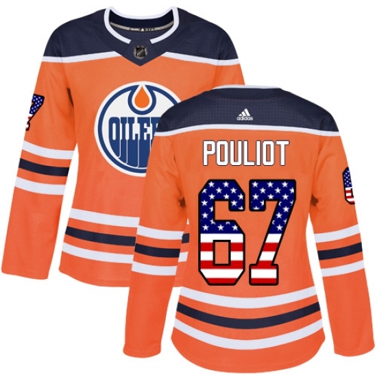 • Women's Adidas Edmonton Oilers #67 Benoit Pouliot Authentic Orange USA Flag Fashion NHL Jersey