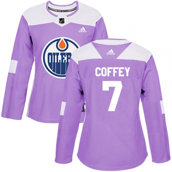 Women's Adidas Edmonton Oilers #7 Paul Coffey Authentic Purple Fights Cancer Practice NHL Jersey