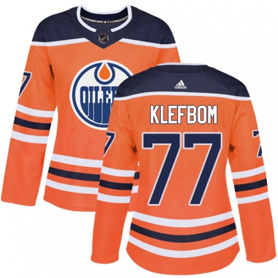 • Women's Adidas Edmonton Oilers #77 Oscar Klefbom Authentic Orange Home NHL Jersey