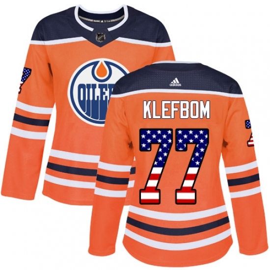 • Women's Adidas Edmonton Oilers #77 Oscar Klefbom Authentic Orange USA Flag Fashion NHL Jersey