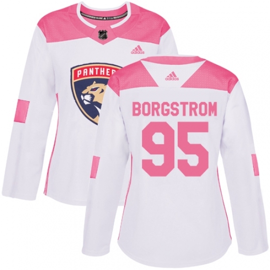 • Women's Adidas Florida Panthers #95 Henrik Borgstrom Authentic White/Pink Fashion NHL Jersey