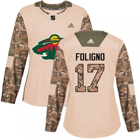 Women's Adidas Minnesota Wild #17 Marcus Foligno Authentic Camo Veterans Day Practice NHL Jersey