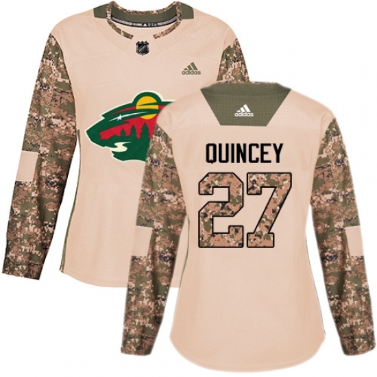 Women's Adidas Minnesota Wild #27 Kyle Quincey Authentic Camo Veterans Day Practice NHL Jersey