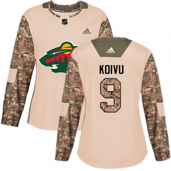 • Women's Adidas Minnesota Wild #9 Mikko Koivu Authentic Camo Veterans Day Practice NHL Jersey