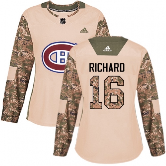 • Women's Adidas Montreal Canadiens #16 Henri Richard Authentic Camo Veterans Day Practice NHL Jersey