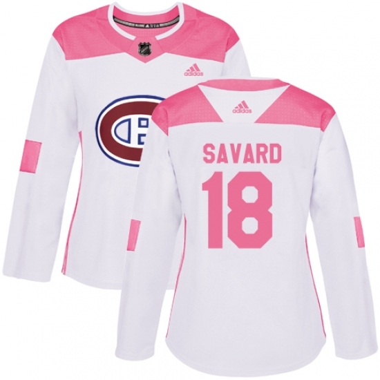 Women's Adidas Montreal Canadiens #18 Serge Savard Authentic White/Pink Fashion NHL Jersey
