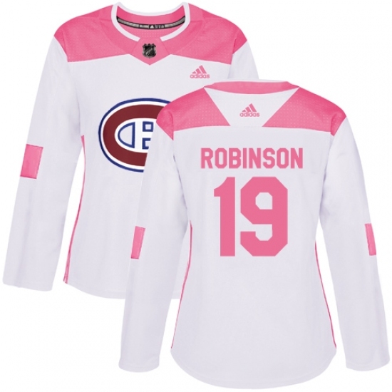 Women's Adidas Montreal Canadiens #19 Larry Robinson Authentic White/Pink Fashion NHL Jersey