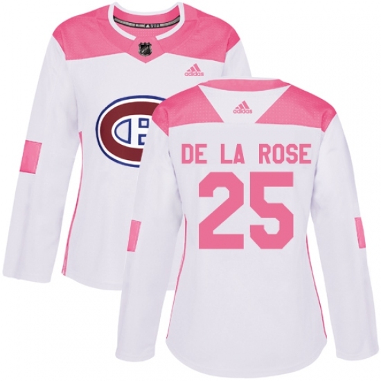 • Women's Adidas Montreal Canadiens #25 Jacob de la Rose Authentic White/Pink Fashion NHL Jersey