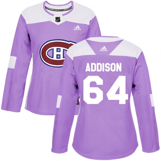 • Women's Adidas Montreal Canadiens #64 Jeremiah Addison Authentic Purple Fights Cancer Practice NHL Jersey