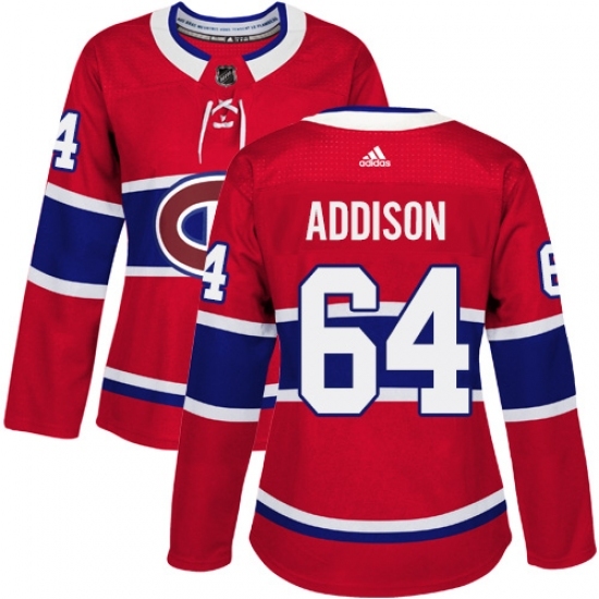 Women's Adidas Montreal Canadiens #64 Jeremiah Addison Authentic Red Home NHL Jersey
