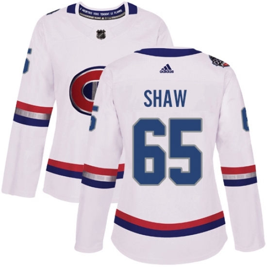 • Women's Adidas Montreal Canadiens #65 Andrew Shaw Authentic White 2017 100 Classic NHL Jersey