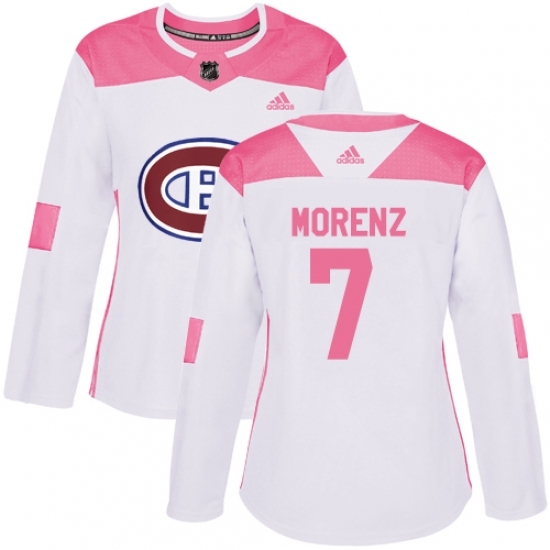Women's Adidas Montreal Canadiens #7 Howie Morenz Authentic White/Pink Fashion NHL Jersey