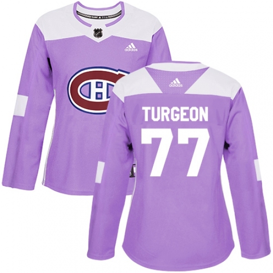 • Women's Adidas Montreal Canadiens #77 Pierre Turgeon Authentic Purple Fights Cancer Practice NHL Jersey