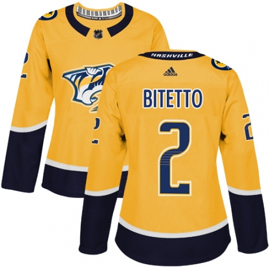 Women's Adidas Nashville Predators #2 Anthony Bitetto Authentic Gold Home NHL Jersey