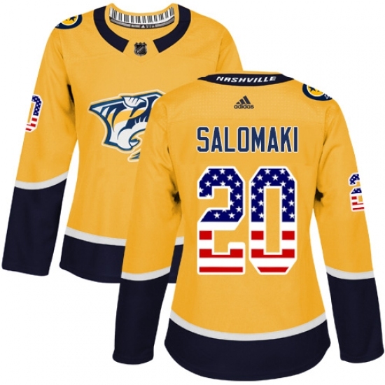 Women's Adidas Nashville Predators #20 Miikka Salomaki Authentic Gold USA Flag Fashion NHL Jersey