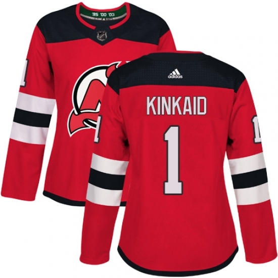 Women's Adidas New Jersey Devils #1 Keith Kinkaid Authentic Red Home NHL Jersey