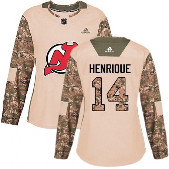 • Women's Adidas New Jersey Devils #14 Adam Henrique Authentic Camo Veterans Day Practice NHL Jersey