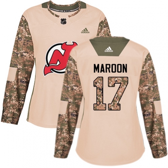 • Women's Adidas New Jersey Devils #17 Patrick Maroon Authentic Camo Veterans Day Practice NHL Jersey