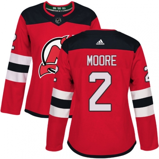 • Women's Adidas New Jersey Devils #2 John Moore Authentic Red Home NHL Jersey