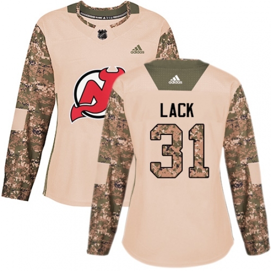 • Women's Adidas New Jersey Devils #31 Eddie Lack Authentic Camo Veterans Day Practice NHL Jersey