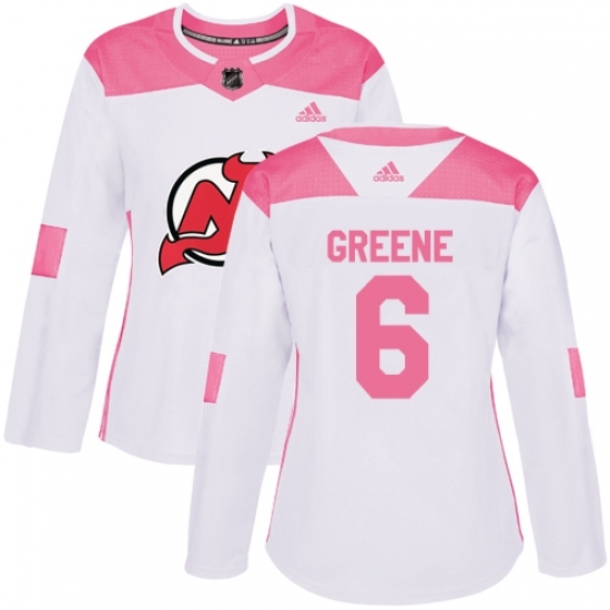 Women's Adidas New Jersey Devils #6 Andy Greene Authentic White/Pink Fashion NHL Jersey
