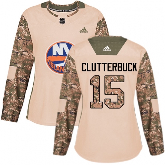 • Women's Adidas New York Islanders #15 Cal Clutterbuck Authentic Camo Veterans Day Practice NHL Jersey