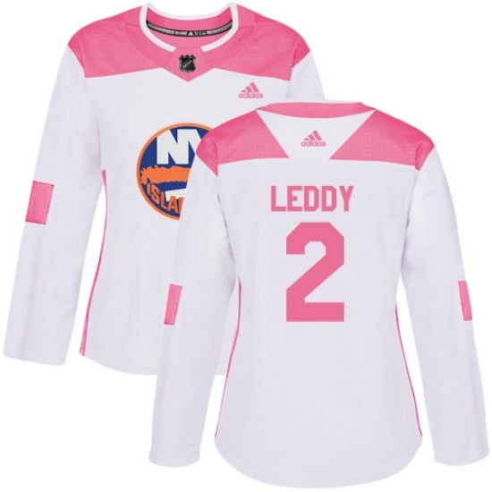 Women's Adidas New York Islanders #2 Nick Leddy Authentic White/Pink Fashion NHL Jersey